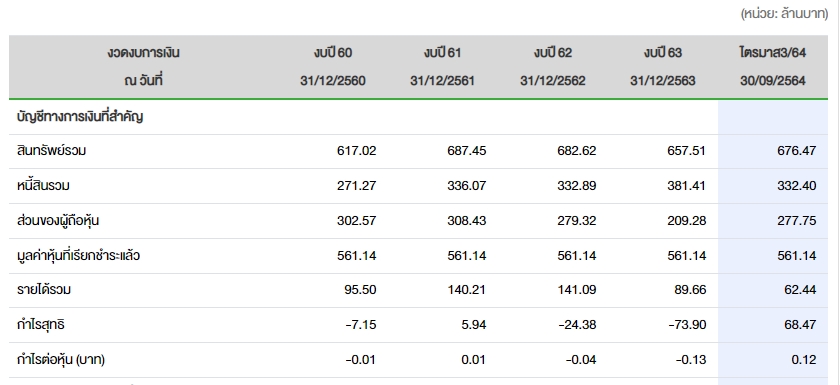 โดยผลการดำเนินงานไตรมาสที่ 3/2564 มีกำไร 2.47 ล้านบาท เทียบไตรมาส 3/2563 ขาดทุนสุทธิ 15.67 ล้านบาท ขณะที่งวด 9 เดือนพลิกมีกำไร 68.46 ล้านบาท เทียบช่วงเดียวกันของปีก่อนขาดทุน 34.92 ล้านบาท