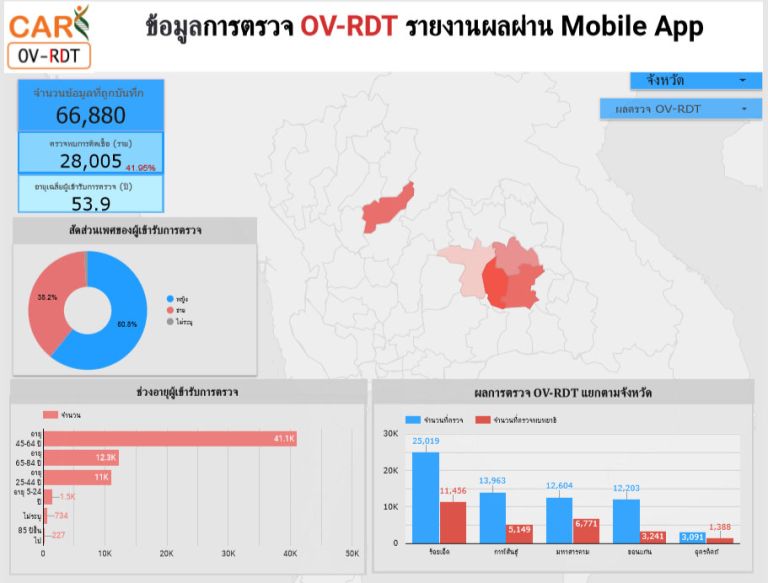 ปัจจุบันระบบนี้มีการใช้งานจริงแล้วใน 851 สถานพยาบาล ช่วยคัดกรองผู้มีความเสี่ยงไปแล้วทั้งหมด 62,389 คน และทำให้ผู้ติดเชื้อโรคพยาธิใบไม้ในตับ ได้รับการรักษาที่เหมาะสมแล้วจำนวน 27,353 คน