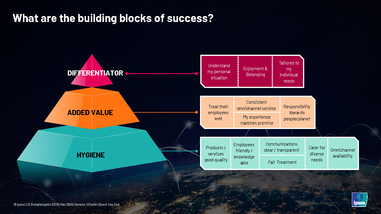 อิปซอสส์ (Ipsos) ได้สำรวจใน 18 ประเทศ ครอบคลุม 4 กลุ่มอุตสาหกรรมหลัก ได้แก่ ธุรกิจการเงิน (ธนาคาร, ประกันภัย, ประกันภัยรถยนต์), การค้าปลีก (ซูเปอร์มาร์เก็ต), เทคโนโลยีและโทรคมนาคม (เครือข่ายโทรศัพท์มือถือ) และภาคการขนส่ง (รถยนต์, สายการบิน) เพื่อทำรายงาน Ipsos’ CX Global Insight 2025 สำหรับการปรับกลยุทธ์ CX และผลักดันการเติบโตทางธุรกิจ