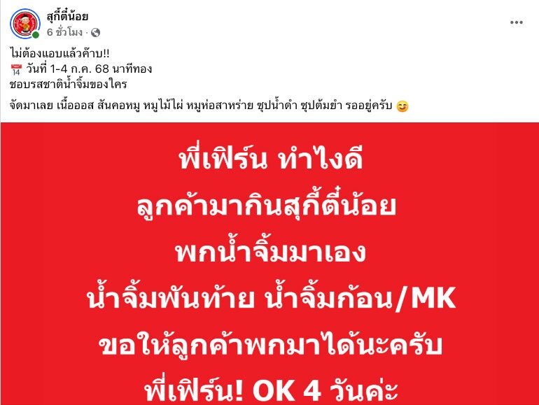 สุกี้ตี๋น้อย ประกาศถึงลูกค้า เลิกแอบ ใครชอบน้ำจิ้มยี่ห้ออื่น เปิดโอกาสให้เข้าร้าน 4 วัน