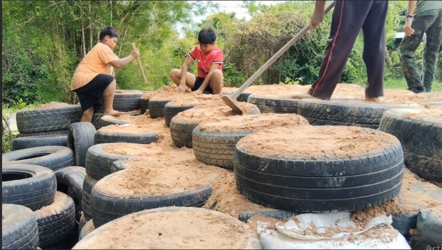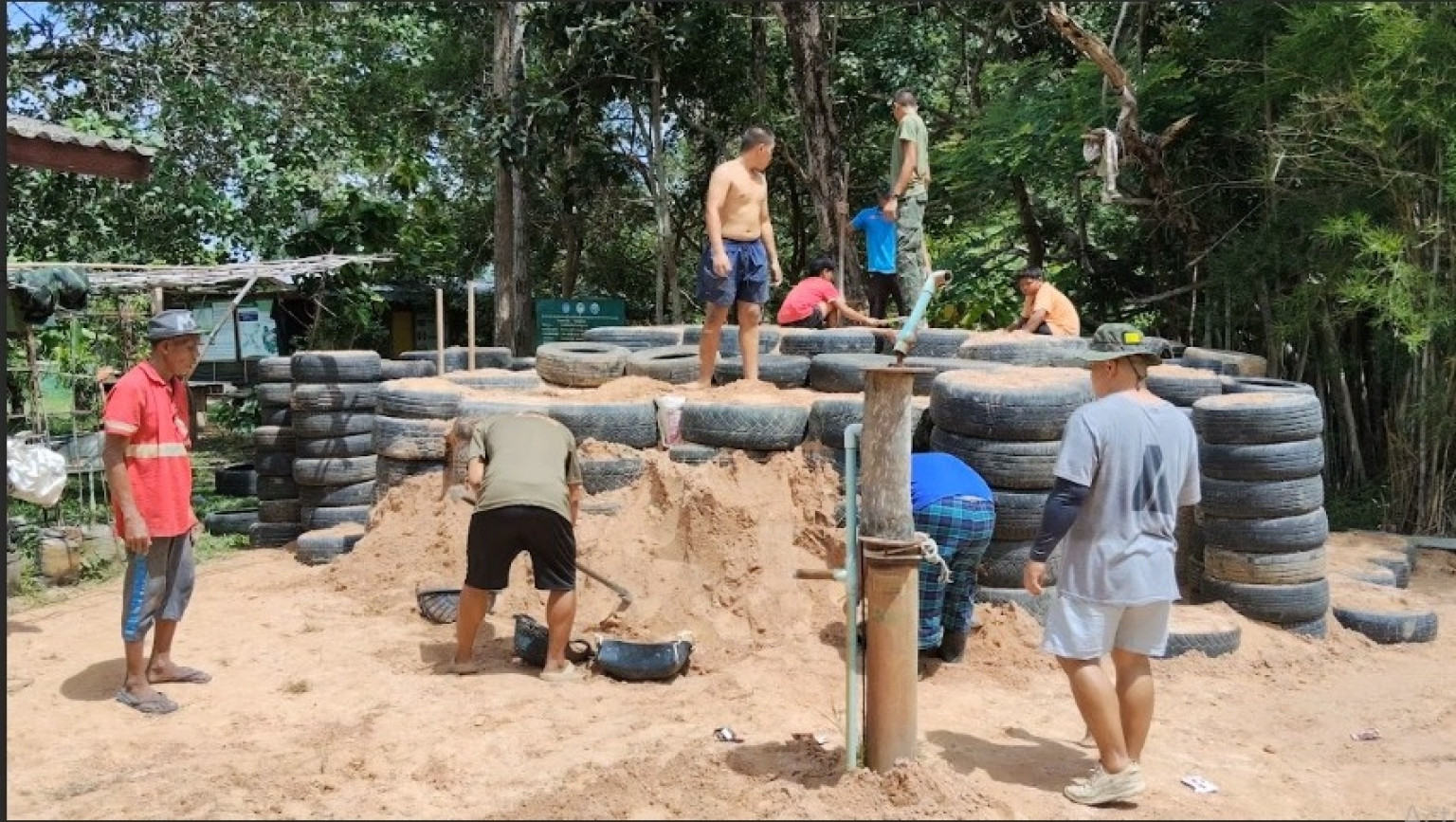 วันที่ 16 มิ.ย.68 ผู้สื่อข่าวรายงานว่า หลังจากการประชุม JBC ไทย-กัมพูชา ไม่เป็นผล ประกอบกับ สมเด็จฮุนเซ็น อดีตนายกรัฐมนตรีกัมพูชา ออกมาประกาศว่า หากไทยไม่เปิดด่านชายแดน ภายในวันพรุ่งนี้ (17 มิ.ย.68) กัมพูชาจะปิดด่านชายแดนทั้งหมดเพื่อไม่ให้ไทยส่งสินค้าได้ สถานการณ์ยิ่งตึงเครียดระหว่างประเทศ ทำให้ชาวบ้านในพื้นที่ชายแดน ต่างวิตกกังวลว่าสถานการณ์จะไม่ดีขึ้นและอาจเกิดการสู้รบเกิดขึ้นได้ โดยไม่คาดคิด จึงเร่งพากันปรับปรุงหลุมหลบภัย โดยเฉพาะ จนท.ชุดปฏิบัติการภารกิจพลเรือน กกล.สุรนารี ที่ 221 ได้พากันเร่งสร้างและปรับปรุงหลุมหลบภัยให้กับศูนย์พัฒนาเด็กเล็กบ้านด่าน ต.ด่าน อ.กาบเชิง จ.สุรินทร์ โดยมีเด็กๆเยาวชนมาช่วยกันขุดดินยกดินถมสร้างหลุมหลบภัย ที่ใช้ยางรถยนต์ที่หลายภาคส่วนบริจาคมาให้ เพื่อความปลอดภัยของเด็กๆหากเกิดเหตุการณ์ไม่คาดคิดขึ้น