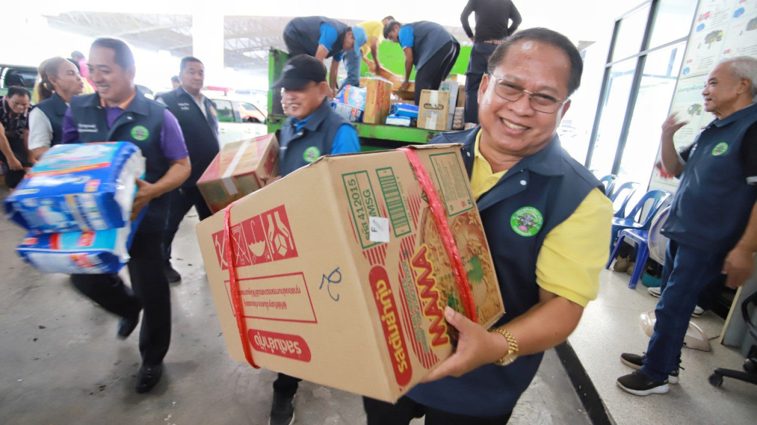 ธารน้ำใจหลั่งไหล เทศบาลเมืองบางกะดี ระดมอาหารข้าวของเครื่องใช้ส่งถึงทหารหาญและชาวบ้านชายแดน