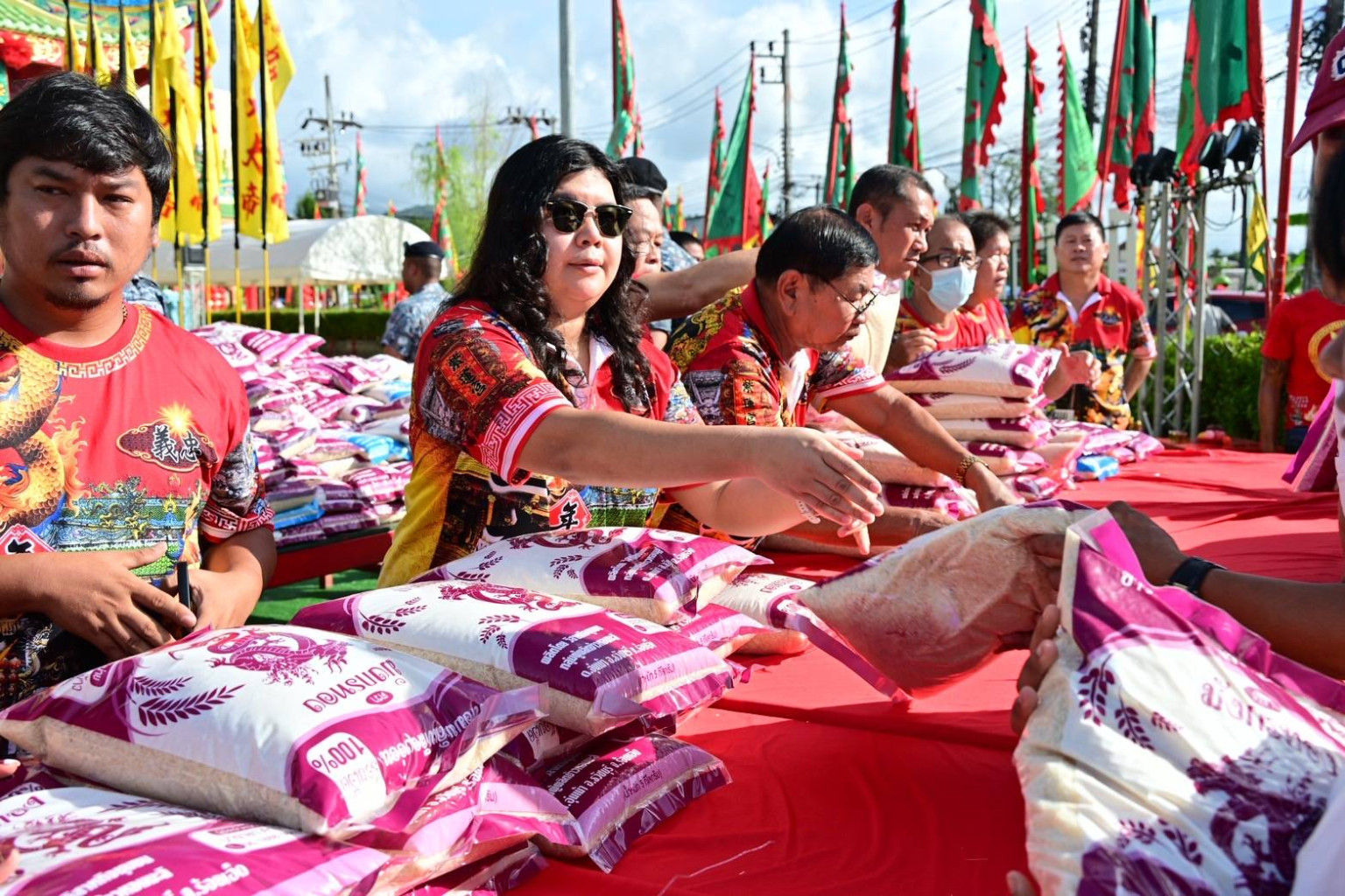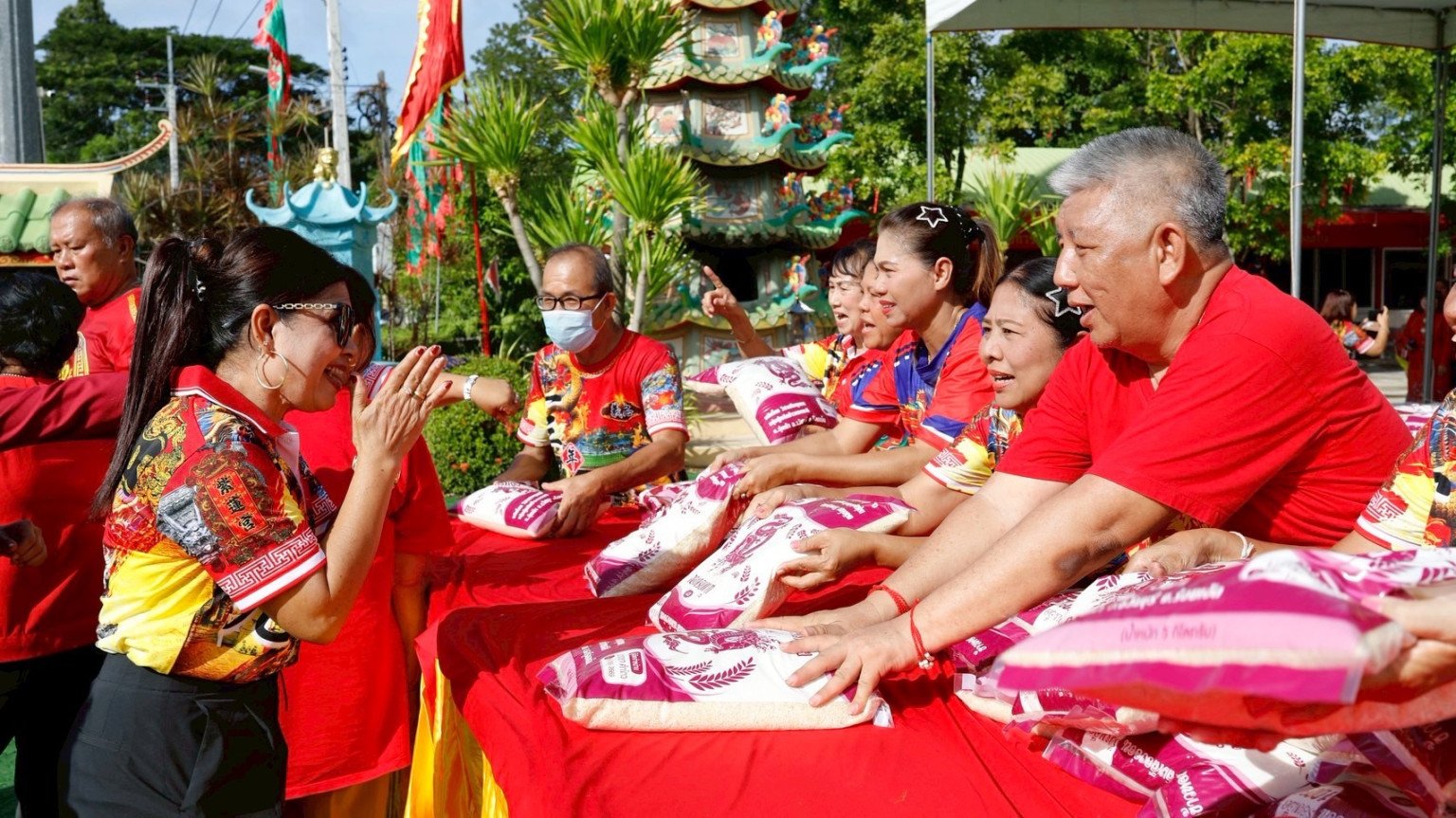 กุศลใหญ่!ศาลเจ้ากวนอู นาบอน จัดพิธีแซยิด แจกข้าวสาร 1,800 ถุง แก่ประชาชน