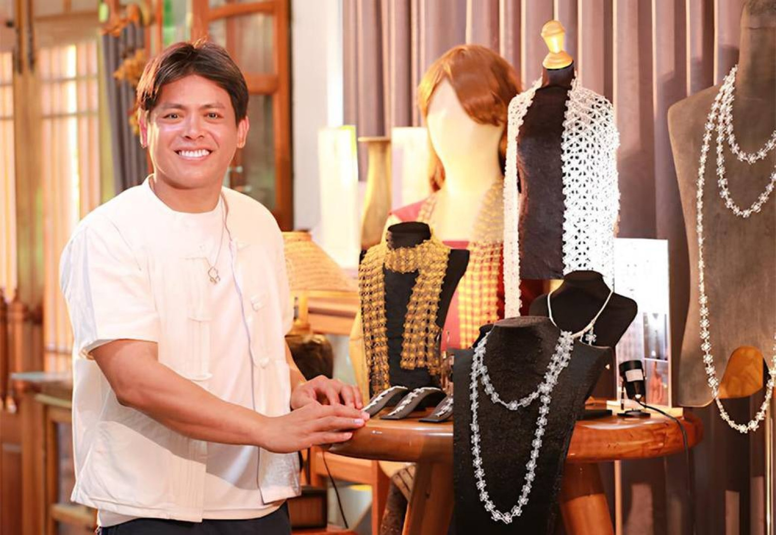นายธีระกิจ เมณร์กูล หนึ่งในสมาชิก SACIT ผู้สร้างสรรค์งานศิลปหัตถกรรมคนรุ่นใหม่ ประเภทเครื่องโลหะ (เครื่องประดับ) กล่าวว่า รู้สึกภาคภูมิใจที่ได้เป็นตัวแทนชาวสุโขทัย ถ่ายทอดภูมิปัญญาของอำเภอศรีสัชนาลัย ผ่านงานหัตถศิลป์ท้องถิ่นที่มีคุณค่าอย่าง “หัตถกรรมเงินทองลายโบราณ” ในงาน “Crafts Bangkok 2025” โดยปีนี้ เป็นครั้งแรกที่ได้รับโอกาสจากทางสถาบันส่งเสริมศิลปหัตถกรรมไทยในการร่วมนำสินค้าจัดจำหน่ายภายใต้ชื่อแบรนด์ “ณ ทัย” ทั้งนี้ยังได้รับการสนับสนุนจากทาง SACIT ในการเสริมสร้างทักษะองค์ความรู้จากโครงการอบรมต่าง ๆ ตลอดระยะเวลากว่า 3 ปีที่ผ่านมา จึงทำให้สามารถพัฒนารูปแบบผลงานให้มีความทันสมัยมากยิ่งขึ้น โดยได้ประยุกต์นำเอาเทคนิคการวางลวดลายและการใช้สี รวมถึงแนวคิดการออกแบบให้โลหะแลดูมีความพลิ้วไหว เพื่อเสริมเอกลักษณ์ความโดดเด่น สร้างสรรค์เป็นผลิตภัณฑ์รูปแบบใหม่ที่ฉีกกรอบไปจากเดิม โดยมีผลงานชิ้นเอกที่ภูมิใจนำเสนอ อาทิ “ชุดห่มเงิน” ซึ่งเป็นการนำโลหะเงินมาขึ้นรูปเป็นดอกพิกุลร้อยเรียงต่อกันเป็นผืนผ้าคลุมไหล่ ซึ่งเรียกได้ว่าเป็นเครื่องประดับเงินชิ้นใหญ่ชิ้นแรก ๆ ของประเทศไทย และต่อยอดไปสู่การสร้างสรรค์งานพุทธศิลป์ ในรูปแบบของสไบ ผ้าคลุมพระ โดยอนาคตมีแนวคิดที่จะต่อยอดไปสู่ผลิตภัณฑ์อื่น ๆ เพื่อเป็นการขยายกลุ่มเป้าหมายของลูกค้าให้มากขึ้น