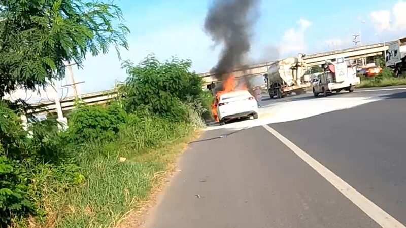 ไม่ถึงบ้าน เก๋งขับไปล้างหัวฉีดไฟลุกท่วมกลางถนนหนีตายระทึก เผาวอดเกือบทั้งคัน