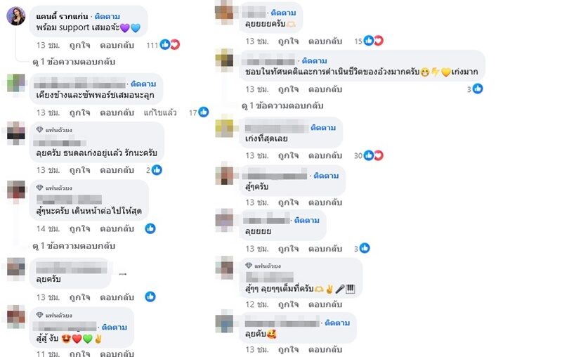 ด้านแฟนๆต่างส่งกำลังใจรัวๆ อาทิ เคียงข้างและซัพพอร์ชเสมอนะลูก , สู้ๆนะครับ เดินหน้าต่อไปให้สุด , ชอบในทัศนคติและการดำเนินชีวิตของอ้วงมากครับเก่งมาก เป็นต้น