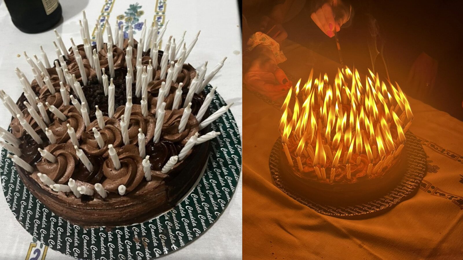 จากวิดีโอ บนโต๊ะมีเค้กช็อกโกแลตก้อนหนี่งเต็มไปด้วยเทียน 95 เล่ม หลังจากจุดเทียนทั้งหมดแล้ว เค้กก็ดูเหมือนเต็มไปด้วยแสงไฟอลังการ