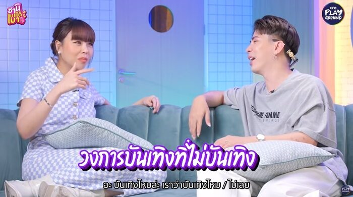วงการบันเทิงที่ไม่บันเทิงคืออะไร เอม บอกว่า อ่ะเราว่าบันเทิงไหมละ ซานิ ตอบว่า ไม่เลย ทำเอา เอม หัวเราะลั่น ซานิ บอกอีกว่า อันนี้เป็นเรื่องที่ดาราก็ไม่ได้ออกมาเคลียร์นะ คนชอบคิดว่าชีวิตต้องสนุกมากแหละ อย่างพี่สนิทกับโอ๊ต คนบอกอยากมากินเหล้ากับพวกมึงจังเลย แต่มึงรู้เปล่าพวกกูนั่งกินเหล้ากันยังไงรู้เปล่า เหมือนคนเป็นโรคซึมเศร้านะ คือจะคุยกันเรื่องคนแก่คุย คนอื่นจะชอบคิดว่าเราจะต้องเป็นเหมือนในยูทูบที่เราแบบเฮฮา เพราะเราต้องการจะเอนเตอร์เทนคนอื่น