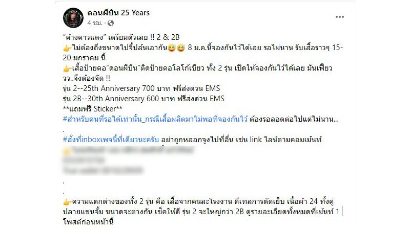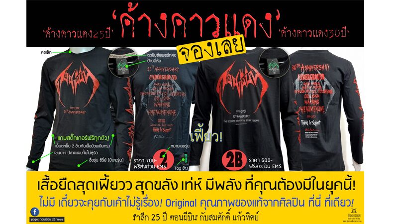 ไม่ต้องปล้น! ตำนานมาเอง เพจ "ดอนผีบิน 25 Years" วงดนตรีแทรช เมทัลของประเทศไทย เคลื่อนไหวเปิดจองเสื้อ 'ค้างคาวแดง' ฮิตมาก คนดังใส่ตรึม