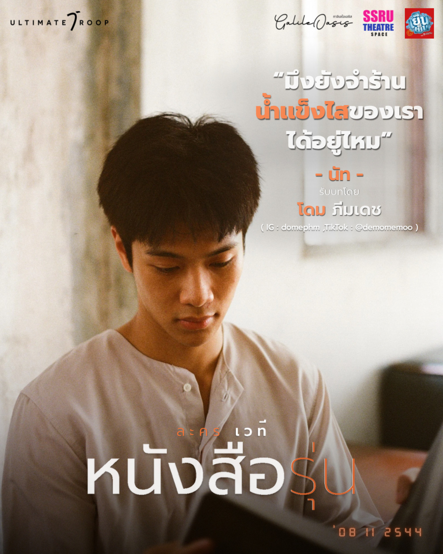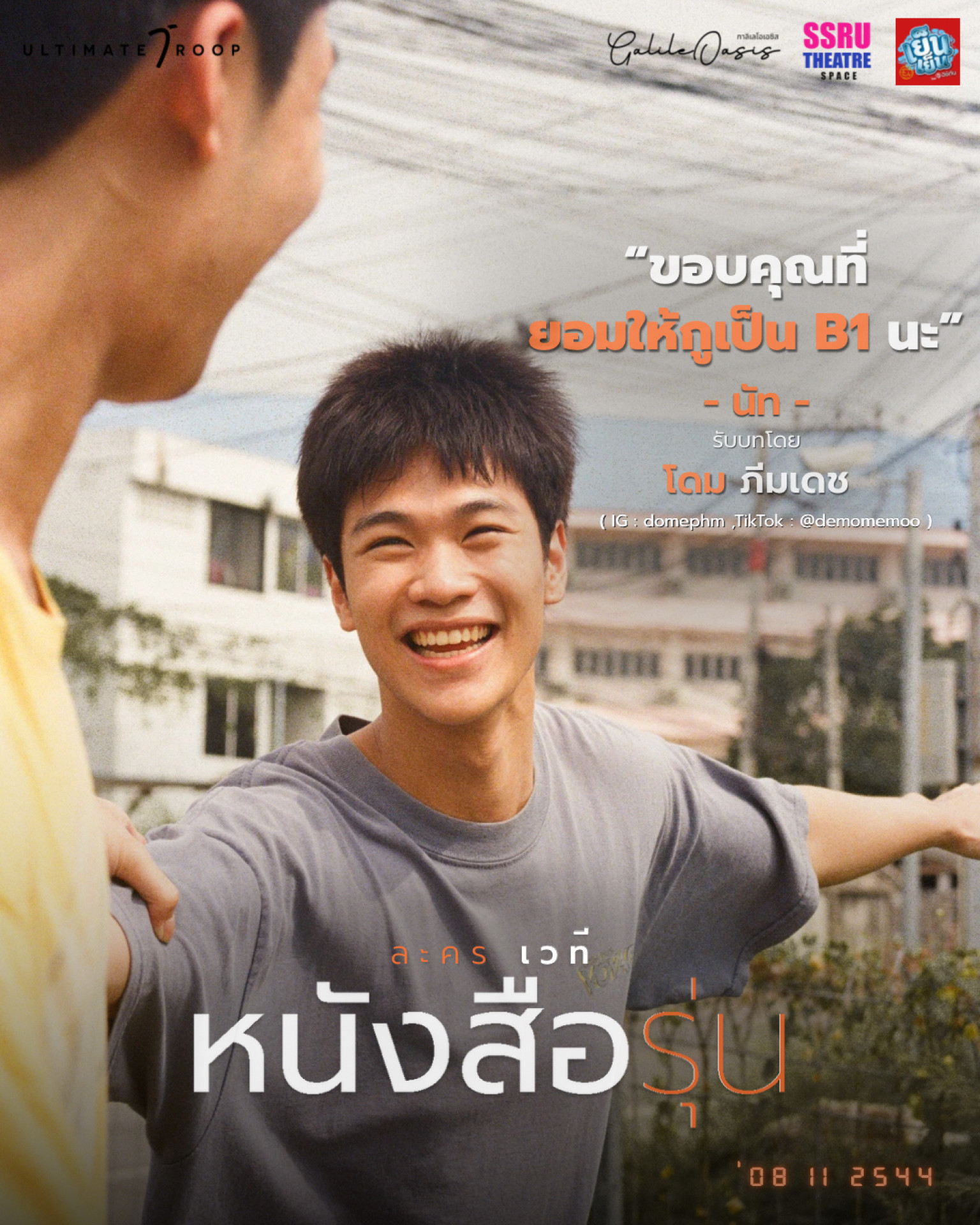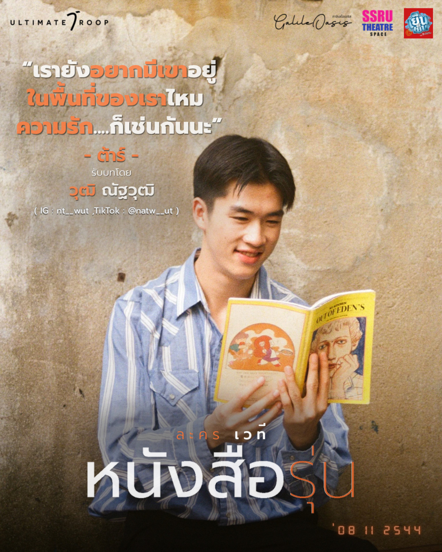 มาย้อนความทรงจำไปกับคู่ ‘ภพ – นัท’ ใน ‘ละครเวที’ เรื่อง ‘หนังสือรุ่น’ จัดแสดง ณ โรงละคร GalileOasis โดยมีรอบการแสดงเวลา 14.00 น. และ เวลา 18.30 น. ในวันที่ 12 – 14 กันยายน และ 19 – 21 กันยายน 2568 พิเศษกับการเพิ่มบัตร Early Bird จำนวน 50 ที่นั่ง พร้อมลดราคา 100 บาท เฉพาะรอบวันที่ 12-14 กันยายน สามารถซื้อบัตรได้ผ่านทาง Line : @UltimateTroop และสามาถติดตามรายละเอียดเพิ่มเติมได้ผ่านทาง Facbook : UltimateTroop, IG : ultimatetroopofficial, TikTok : UltimateTroop, X : UltimateTroop และ YouTube : UltimateTroop Official