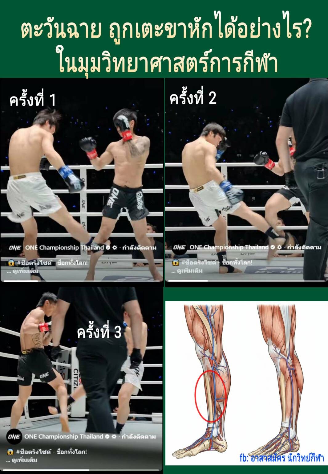 - จิตใจ: สิ่งที่น่าห่วงกว่าร่างกายคือสภาพจิตใจครับ การบาดเจ็บลักษณะนี้อาจทำให้เกิดความระแวง (PTSD - Post-Traumatic Stress Disorder) ไม่กล้าใช้ขาข้างนั้นเต็มที่ หรือไม่กล้าปะทะหนักๆ อีก ซึ่งอาจส่งผลต่อฟอร์มการชกในระยะยาว