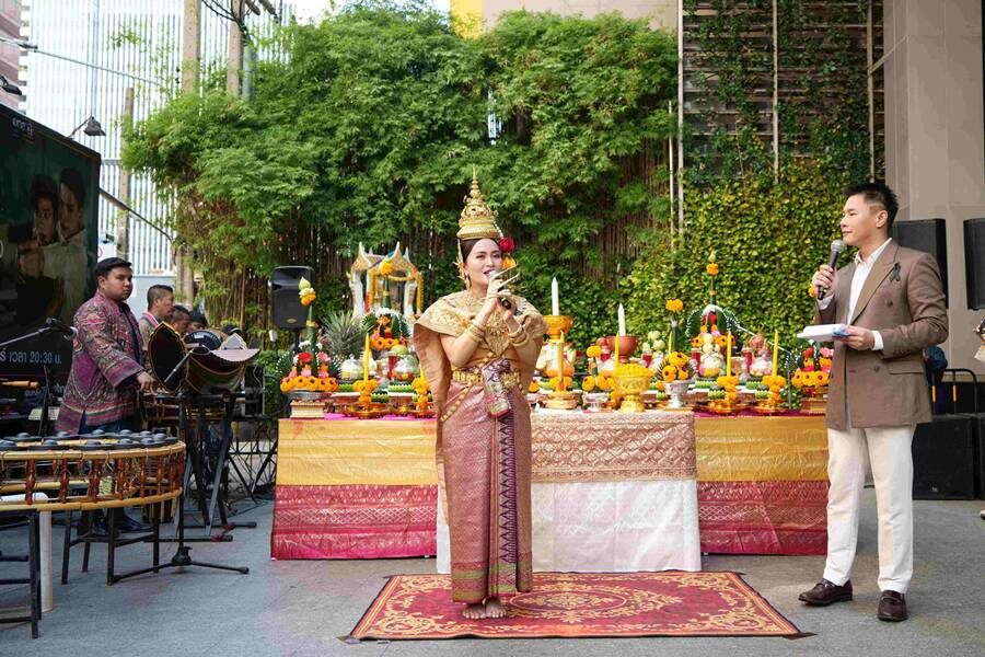 ปีทอง “ก้านตอง ทุ่งเงิน” รำแก้บนถวายศาลหน้าตึกแกรมมี่ หลังยอดวิว 3 เพลงดัง จื่อบ่-กุหลาบ-แก้บน ทะลุ 500 ล้านวิว!