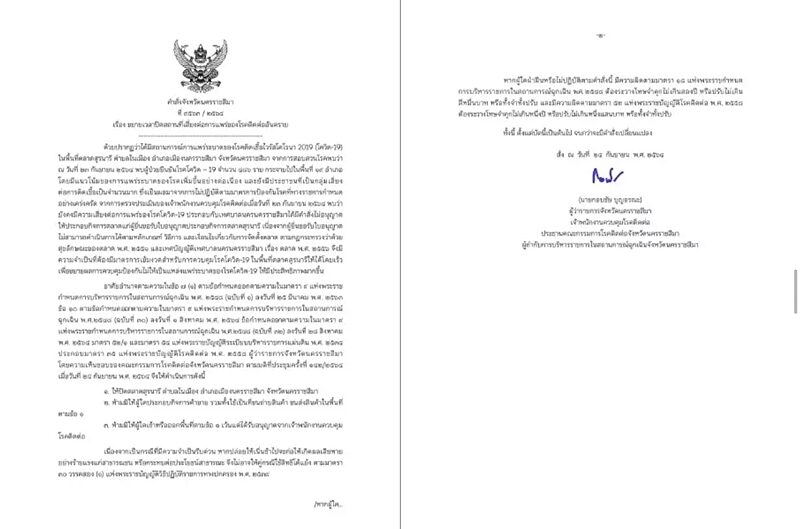 คณะกรรมการโรคติดต่อจังหวัดนครราชสีมา จึงมีคำสั่งขยายเวลาปิดสถานที่เสี่ยงต่อการแพร่ของโรคติดต่ออันตราย จึงมีคำสั่งให้ปิดตลาดสุรนารี ห้ามมิให้ผู้ใดประกอบกิจการค้าขาย รวมทั้งใช้เป็นที่ขนถ่ายสินค้า และขนส่งสินค้าในพื้นที่ ห้ามมิให้ผู้ใดเข้าออกพื้นที่ เว้นแต่ได้รับอนุญาตจากเจ้าพนักงานควบคุมโรคติดต่อ
