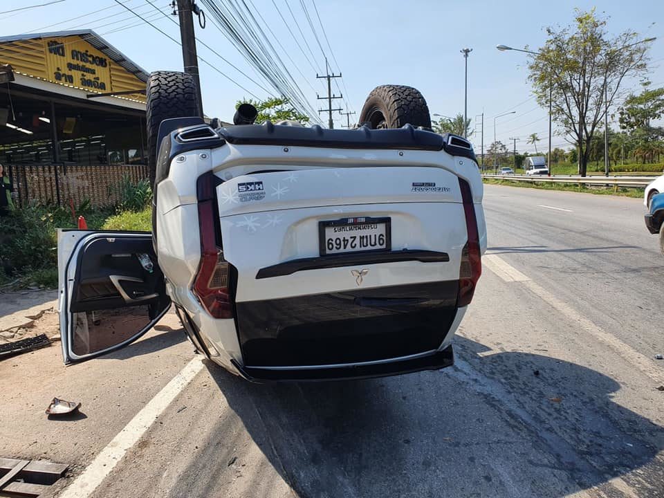 คือใครๆดูสภาพรถบอกตรงกันหมดว่า น่าจะเจ็บหนักมาก แต่กลับไม่เป็นอะไรตอนรถพลิกคว่ำ โชคดีว่าผมตั้งสติไว้ได้คือขับมานี่เห็นแล้วว่าจะเกิดอะไรขึ้น จึงก้มขดตัวลง และแอร์แบ็คในรถทำงานพร้อมกับที่ปกติเป็นคนเข็มขัดนิรภัยอยู่แล้ว ช่วยเซฟร่างกายได้เยอะมาก ส่วนทางคู่กรณี บาดเจ็บเล็กน้อย และนับว่าโชคดีที่เค้าตัดหน้ากลางแยก แต่เดชะบุญจริงๆที่รถกลับลำเต็มตัวแล้ว และบิ๊กก็ผ่อนความเร็วทัน โดนชนแต่ท้าย แล้วหักหลบจึงพลิกคว่ำตามที่เห็นนี่ละครับ