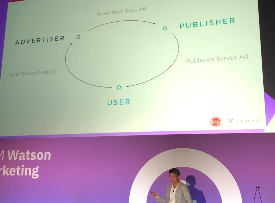 ซึ่งในงาน Advertising Week นั้นก็ได้มี Startup ชื่อ Kiip ซึ่งเป็นบริษัทด้าน Mobile Advertising ในอเมริกา ได้ลองเอาเทคโนโลยี Blockchain นี้มาใช้ในการขายสื่อโฆษณาต่าง ๆ ให้ลูกค้า และแก้ปัญหาความซับซ้อนในการซื้อสื่อโฆษณาต่าง ๆ ให้มีความง่ายลงและมีความรวดเร็วมากยิ่งขึ้นไป แล้วตัดตัวกลางต่าง ๆ ทิ้งลง ทำให้ราคาซื้อขายนั้นมีความได้เปรียบมากขึ้นไปอีก ซึ่งบริษัท Kiip ได้นำเสนอโมเดลใหม่ดังนี้