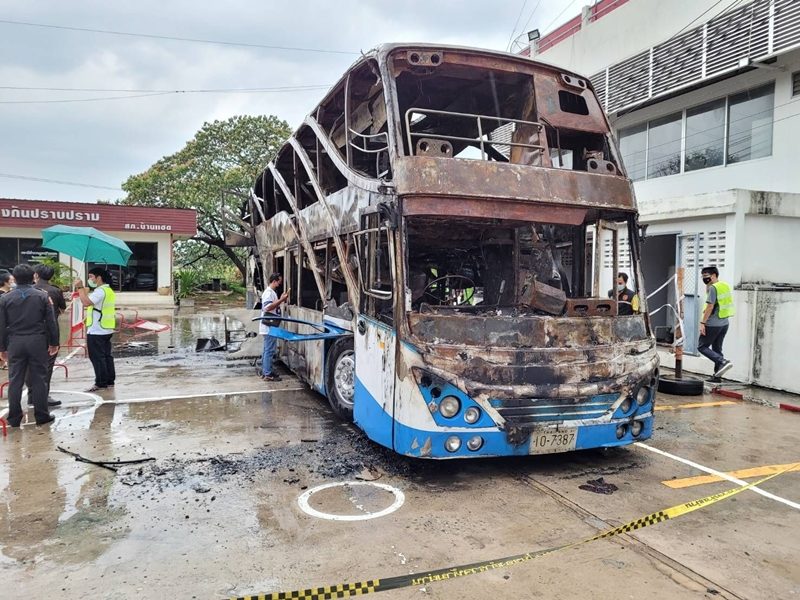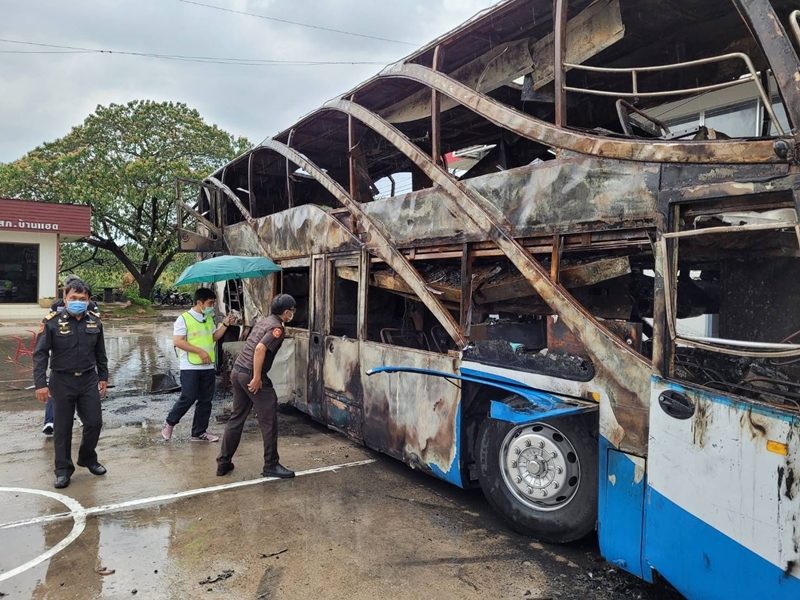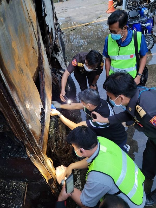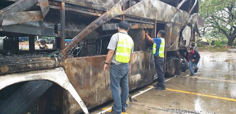 ขนส่ง ปรับ 5 หมื่น เจ้าของรถทัวร์ ไฟคลอก 5 ศพ คาดอุบัติเหตุเกิดจาก เบรกติด ทำให้เกิดความร้อนจนยางระเบิด ก่อนลุกลามติดถังแก๊ส NGV