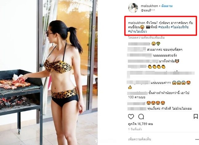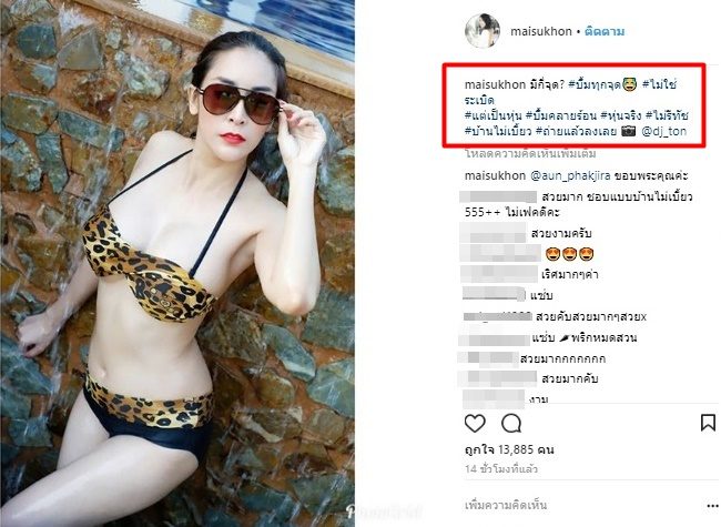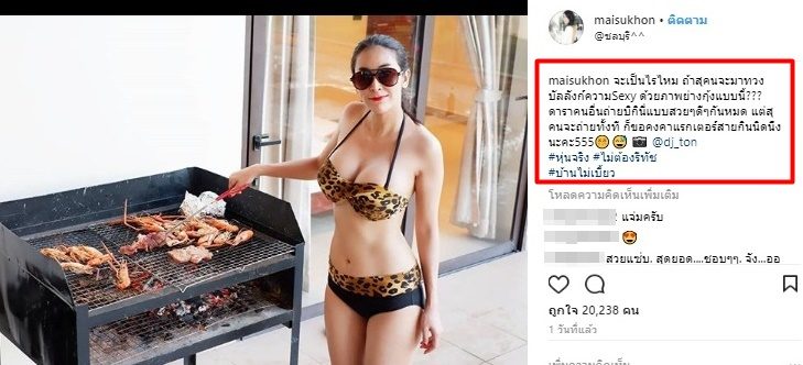 “จะเป็นไรไหม ถ้าสุคนจะมาทวงบัลลังก์ความSexy ด้วยภาพย่างกุ้งแบบนี้ ดาราคนอื่นถ่ายบิกินี่แบบสวยๆดีๆกันหมด แต่สุคนจะถ่ายทั้งที ก็ขอคงคาแรกเตอร์สายกินนิดนึงนะคะ555 @dj_ton #หุ่นจริง #ไม่ต้องรีทัช #บ้านไม่เบี้ยว”