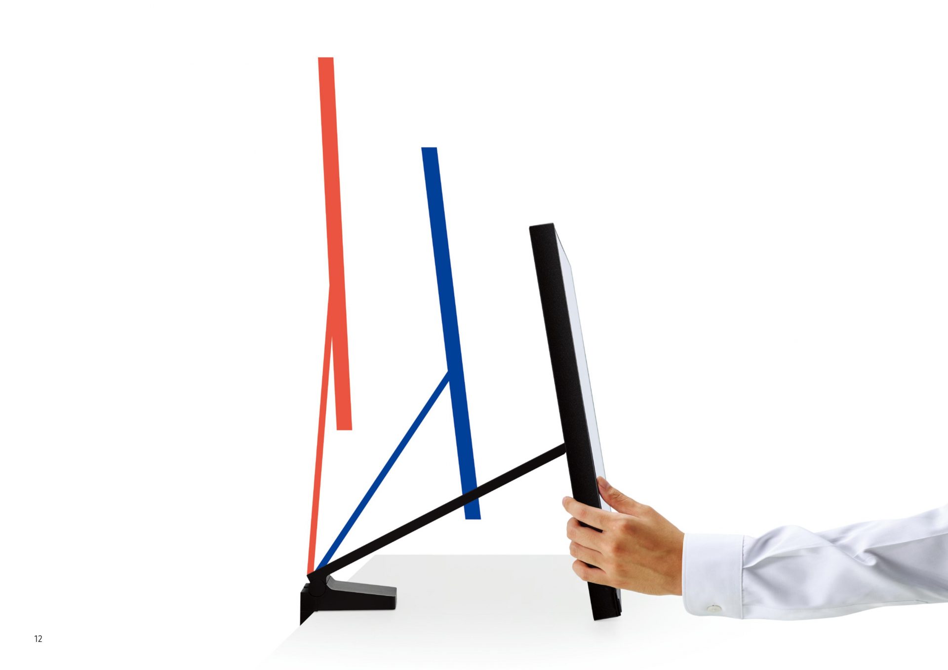 จอสเปซมอนิเตอร์ ออกแบบมาให้สามารถปรับระยะที่เหมาะสมกับการใช้งานได้หลากหลายระดับ โดยเมื่อไม่ได้ใช้งานสามารถดันตัวจอชิดติดผนังเพื่อเพิ่มพื้นที่บนโต๊ะให้ดูโล่งมากขึ้น และถ้าหากต้องการใช้งานเพียงแค่ดึงตัวจอกลับเข้ามาหาตัวพร้อมปรับตำแหน่งการรับชมได้ตามต้องการ ช่วยเพิ่มพื้นที่การทำงานได้มากขึ้นถึง 40 เปอร์เซ็นต์ เมื่อเทียบกับจอทั่วไปในขนาดเท่า ๆ กัน และเป็นการลดพื้นที่ที่ไม่ได้ใช้ประโยชน์หรือ Dead Space ที่เกิดจากการวางจอมอนิเตอร์ได้ถึง 94 เปอร์เซ็นต์ ด้วยดีไซน์ขาตั้งแบบหนีบ (Clamp Type Stand) ที่สามารถยกขึ้นหรือลงได้อย่างรวดเร็วและง่ายดาย พร้อมการปรับระดับความสูงของจอให้เหมาะสมสำหรับผู้ใช้งานแต่ละคนและการใช้งานรูปแบบต่าง ๆ จึงเหมาะเป็นโซลูชั่นอเนกประสงค์ที่ตอบโจทย์ในทุกไลฟ์สไตล์ทั้งการใช้งานภายในบ้านหรือออฟฟิศ