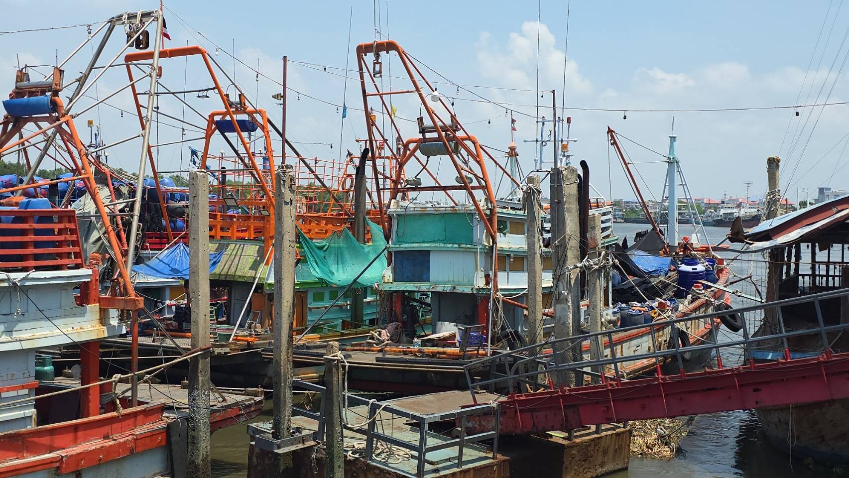 จอดสนิท เรือประมงสมุทรสาคร กระทบหนัก น้ำมันเขียว พุ่งลิตรละ 6.5 บาท แบกต่อไปไม่ไหว ต้นทุนพุ่ง ต้องจอดเรือทิ้งไว้ วอนรัฐบาลแก้ปัญหา