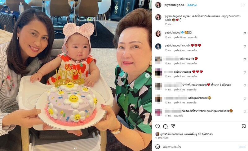 ล่าสุด คุณยายปิยะนุช กู๊ด เผยโมเมนต์อบอุ่นในวันครบรอบ 5 เดือนของ น้องเอลิเซีย หลานสาว พร้อมหน้าทั้งคุณยายและคุณย่าเลย พร้อมแคปชั่นว่า“หนูน้อย เอลิเซียครบ5เดือนแล้วค่า Happy 5 months Alicia”