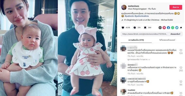 ด้านคุณพ่อโน้ต โพสต์คลิป (ชมคลิป) เอ็นดูลูกสาว ขณะคุณพ่ออุ้มลูกสาว และ คุณแม่อุ้มลูกสาว พร้อมแคปชั่นถามว่า “ผมอุ้มแพทหรือแพทอุ้มผม..ฝากทุกคนช่วยเคลียร์หน่อยครับผม”