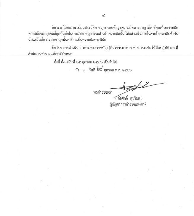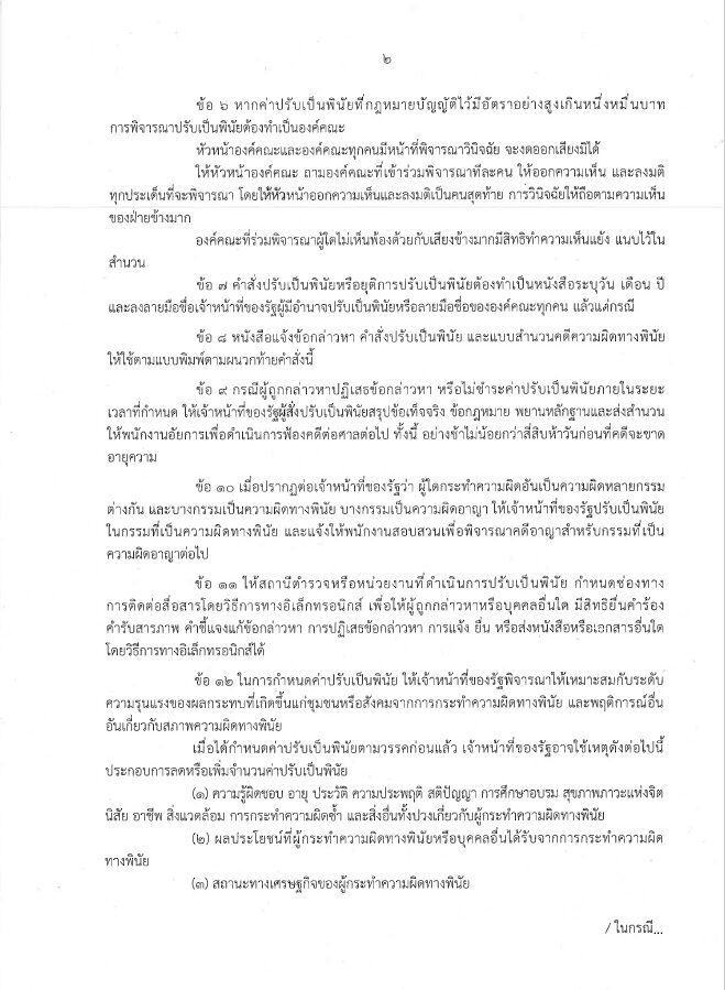 หากผู้ถูกกล่าวหาไม่ชี้แจงหรือแก้ข้อกล่าวหาภายในระยะเวลาดังกล่าว เจ้าหน้าที่ของรัฐจะมีคำสั่งปรับเป็นพินัย ให้ผู้ถูกกล่าวหาชำระค่าปรับภายใน 30 วัน นับแต่วันที่ได้รับแจ้ง และไม่ให้บันทึกการกระทำความผิดทางพินัยไว้ในบันทึกประวัติอาชญากรรมฯ โดยมีผลบังคับใช้ ตั้งแต่ 25 ต.ค.66 เป็นต้นไปนั้น