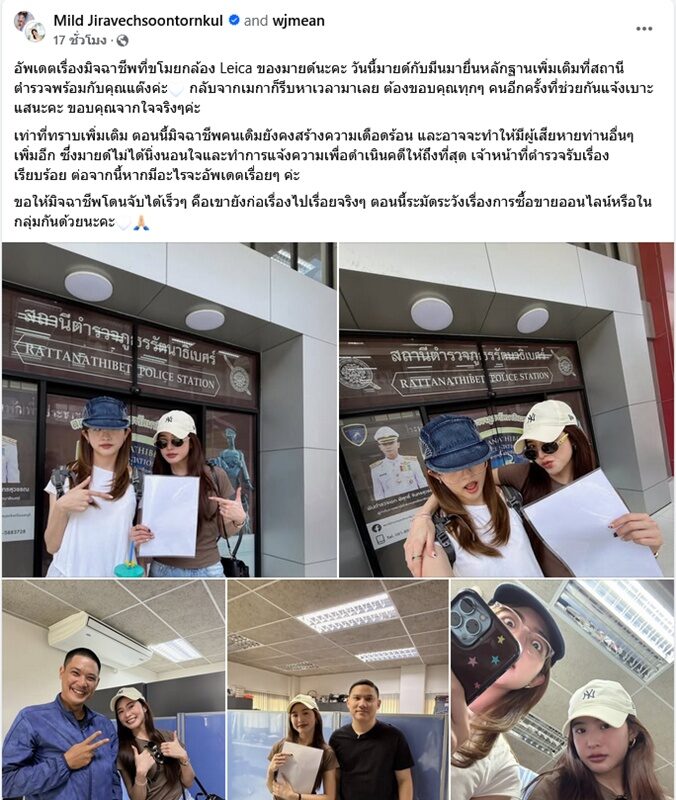 “อัพเดตเรื่องมิจฉาชีพที่ขโมยกล้อง Leica ของมายด์นะคะ วันนี้มายด์กับมีนมายื่นหลักฐานเพิ่มเติมที่สถานีตำรวจพร้อมกับคุณแต๊งค่ะ กลับจากเมกาก็รีบหาเวลามาเลย ต้องขอบคุณทุกๆ คนอีกครั้งที่ช่วยกันแจ้งเบาะแสนะคะ ขอบคุณจากใจจริงๆค่ะ”