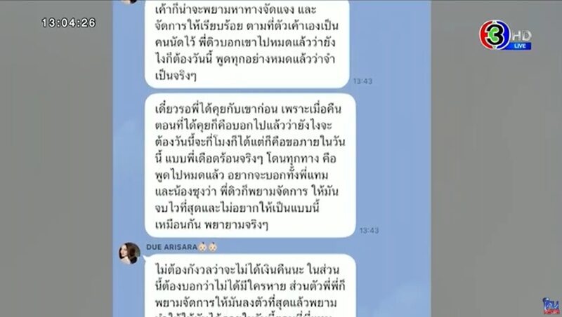 พร้อมทั้งเผยแชท ซุง คุยกับ ดิว โดย ดิว ขอโทษ ซุง ยังไม่ได้คืนเงิน ไม่สามารถคืนได้นะ วันที่ 6 ส.ค. และ ดิว บอกว่ามีสร้อยของตัวเองจะเอาไปขายให้ (ซึ่งเป็นสร้อยของ เมย์)