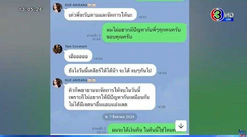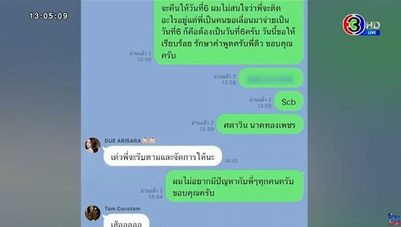 “วันที่ 6 โทรหาพี่แทม เลยคำพูดที่พี่ดิวรับปาก ผมน่าจะต้องพูดกับพี่ดิวเองแล้ว วันนั้นผมไม่ได้รู้สึกไว้ใจพี่ดิวแล้ว พี่แทมสร้างกรุ๊ปไลน์ 3 คน มีแชทผมคุยกับพี่ดิว”