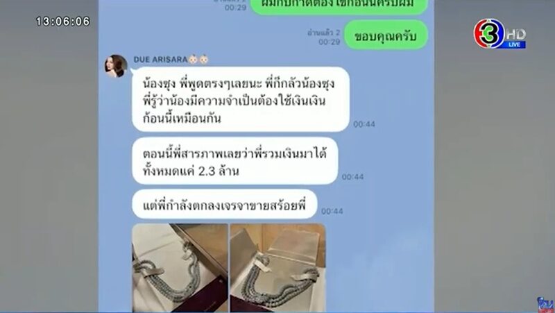 อ่านข่าวต้นฉบับได้ที่ : ซุง เปิดแชทหมด ดิว ยืมเงิน ให้แม่เอาต่างหูเพชรมาอึ้งปลอม เอาสร้อย เมย์ มาขาย