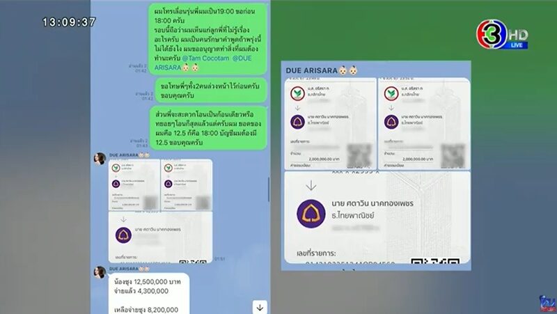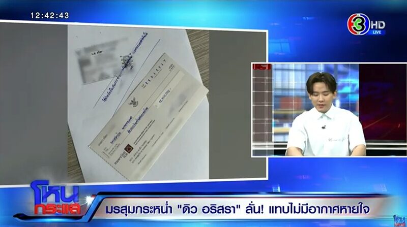 “ตอนจะเอาเงิน 12.5 ล้าน ไปให้ พี่ดิว มีเช็คมาให้ด้วย เขาเสนอจะมีเพชรมาให้อีกด้วย ราคา 20 ล้าน ก็เอาเงิน 12.5 ล้าน ให้ ไม่ได้สนสัญญา มีต่างหูเพชรเม็ดใหญ่มากจริงๆ ”