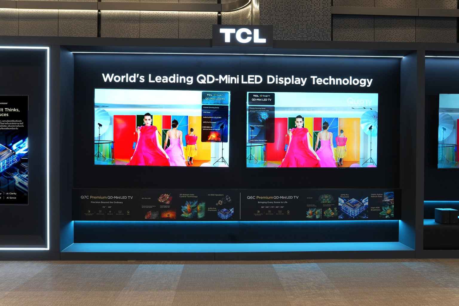 ธีมของการเปิดตัวบนแพลตฟอร์มอีคอมเมิร์ซครั้งนี้คือ "ถึงเวลาก้าวสู่โฉมใหม่ (Time to Upgrade)" โดย TCL พร้อมนำเสนอให้ผู้บริโภคได้สัมผัสกับสินค้าของ TCL ที่มีขนาดจอที่ใหญ่ขึ้นและเทคโนโลยีการแสดงผลที่ล้ำหน้ายิ่งขึ้น พร้อมกับหน้าจอใหม่ล่าสุด HVA panel ช่วยให้ภาพมีความคมชัดและสีสันที่ชมจริงมากยิ่งขึ้น รวมไปถึงการอัพเกรดใช้ชิฟ Ai ใหม่อย่าง AiPQ Pro Processor เข้ามาใช้ปัญญาประดิษฐ์ (AI) เพื่อวิเคราะห์เนื้อหาบนหน้าจอแบบเรียลไทม์ และปรับปรุงคุณภาพของภาพให้เหมาะสมที่สุด ไม่ว่าจะเป็นความคมชัด สีสัน คอนทราสต์ หรือการลดสัญญาณรบกวน ช่วยประมวลผลปรับภาพให้คมชัดลื่นไหลและสมบูรณ์ที่สุดตามแบบฉบับของ TCL สินค้าทีวีรุ่นใหม่ปีนี้ TCL ให้ความสำคัญกับเทคโนโลยี QD-Mini LED เป็นพิเศษ ซึ่งแสดงถึงการใช้หลอดไฟแบ็คไลท์ขนาดเล็กจำนวนมากในการให้แสงที่มีประสิทธิดีขึ้นกว่าเดิม ควบคุมความสว่างและปรับสีได้อย่างแม่นยำบนพื้นที่ต่างๆของหน้าจอ ซึ่งช่วยให้ได้ภาพที่มีค่าคอนทราสต์สูงขึ้น ช่วงสีที่กว้างขึ้น และคุณภาพภาพที่สมจริงมากขึ้นเมื่อเทียบกับเทคโนโลยี LED แบบดั้งเดิม ดังนั้น QD-MiniLED TV ของ TCL จึงสามารถควบคุมการหรี่แสงเฉพาะจุดที่ต้องการความมืดของภาพที่ให้รายละเอียดที่ดีกว่าและให้ความสว่างสูงสุด และความมืดของภาพแบบดำสนิท ส่งมอบประสบการณ์การรับชมอันน่าทึ่งอย่างไม่เคยมีมาก่อน
