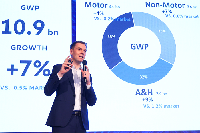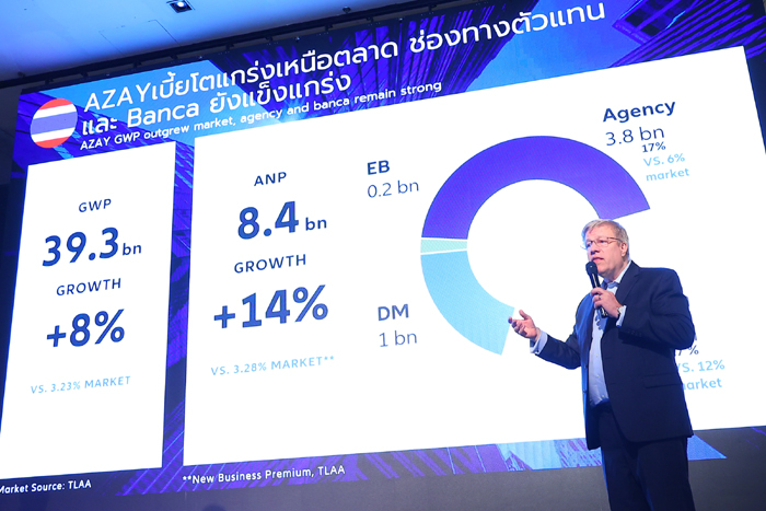 ท่ามกลางความท้าทายดังกล่าว อลิอันซ์ อยุธยา ยังคงแสดงให้เห็นถึงศักยภาพการเติบโตที่แข็งแกร่ง โดยในปี 2567 บมจ. อลิอันซ์ อยุธยา ประกันชีวิต (AZAY) เติบโตแข็งแกร่งเหนือตลาดในทุกช่องทาง สร้างเบี้ยประกันภัยรับรวม (GWP) เติบโต 8% แตะ 3.93 หมื่นล้านบาท ขณะที่เบี้ยประกันภัยรับปีแรก (ANP) เพิ่มขึ้น 14% แตะ 8.4 พันล้านบาท สะท้อนให้เห็นถึงความมั่นคงของธุรกิจประกันชีวิต แม้ในช่วงเวลาที่เศรษฐกิจชะลอตัว การเติบโตดังกล่าวได้รับแรงสนับสนุนจากช่องทางตัวแทนที่ขยายตัว 17% แตะ 3.8 พันล้านบาท และช่องทางธนาคารที่เติบโตถึง 27% แตะ 3.1 พันล้านบาท แสดงให้เห็นถึงความแข็งแกร่งของเครือข่ายการขายหลักของบริษัท ซึ่งสามารถเข้าถึงและตอบโจทย์ความต้องการของผู้บริโภคได้อย่างมีประสิทธิภาพ ด้าน บมจ. อลิอันซ์ อยุธยา ประกันภัย (AAGI) มีการเติบโตในทุกกลุ่มธุรกิจ โดยมีเบี้ยประกันภัยรับรวม เพิ่มขึ้น 7% แตะ 1.09 หมื่นล้านบาท ขับเคลื่อนโดย ประกันอุบัติเหตุและสุขภาพ (A&H) ที่เติบโตสูงถึง 9% แตะ 3.9 พันล้านบาท ขณะที่ ประกันภัยรถยนต์เติบโต 4% แตะ 3.4 พันล้านบาท ประกันวินาศภัยอื่น ๆ เติบโต 7% แตะ 3.6 พันล้านบาท