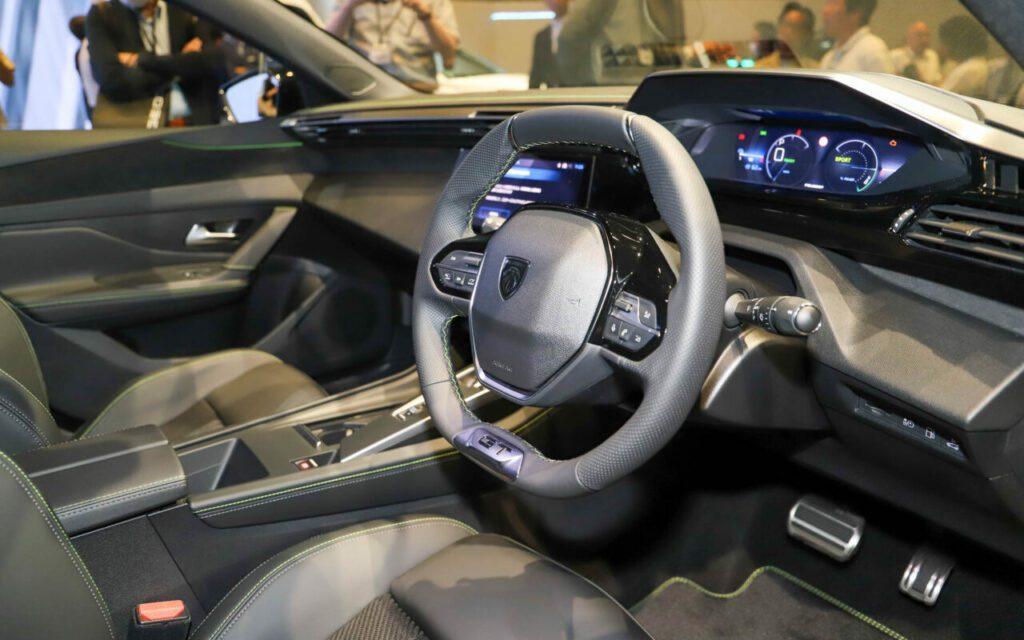ภายในเอกลักษณ์เด่นล้ำยุคแบบ ‘i-Cockpit’ ด้วยมาตรวัดดิจิทัลแบบ Head-Up Display 12.3 นิ้ว แสดงข้อมูลหลากหลาย ติดตั้งเหนือพวงมาลัยขนาดกะทัดรัด รวมถึงบรรดาสวิตช์ควบคุมทรงก้านเปียโน 7 อัน จอสัมผัสขนาดใหญ่กว่าเดิม 10 นิ้ว รองรับ MirrorScreen (Apple CarPlay และ Android Auto) สำหรับช่องแอร์คอนโซลกลางอยู่ระนาบเดียวกับมาตรวัด Head-Up Display พร้อมระบบชาร์จไร้สาย wireless charging พร้อมเครื่องเสียงคุณภาพจาก Focal กำลังขับ 690 W 12 จุด หัวเกียร์อัตโนมัติดีไซน์ปุ่มเลื่อนขึ้นลงคล้ายรถ BMW พร้อมเบาะหนังคุณภาพ เบาะหลังพับได้แบบ 60:40 โดยมีพื้นที่มากขึ้นในการขนของถึง 1,611 ลิตรและ 536 ลิตรแบบไม่พับเบาะ