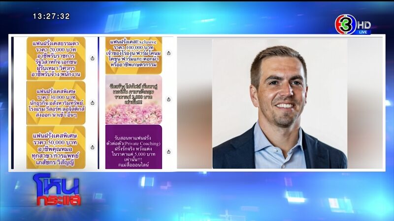 สาย'ฝ.'รอเก้อ สาวโดนหลอกให้รัก ใช้รูปอดีตนักบอลดัง บัลลัค-ลาห์ม ลวงเธอให้โอน หลังผู้เสียหายร้องถูกเพจแม่สื่อออนไลน์หลอกเงิน เอาทองพ่อไปจำนำ ช็อตฟีลรูปฝรั่งทำอึ้งกลางรายการ