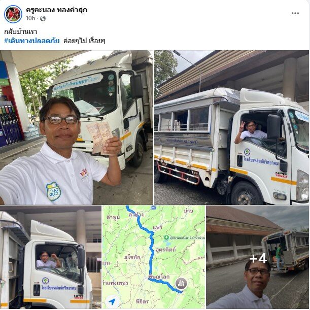ขณะที่ในเฟซบุ๊ก ของ ครูคะนอง ทองคำสุก ได้อัพเดตตั้งแต่การเดินทางเพื่อกลับเพชรบูรณ์