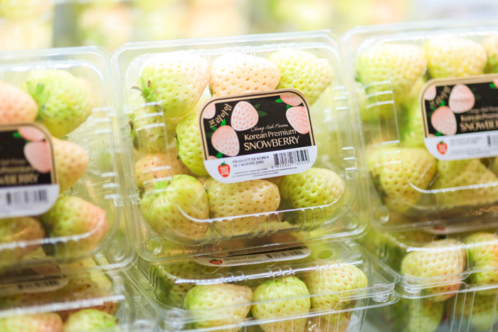 ที่ละลายในปากของคุณสโนว์เบอร์รี (Snowberry) สตรอว์เบอร์รีสีชมพูนุ่มนิ่มราวกับเกล็ดหิมะแตกต่างจากสตรอว์เบอร์รีทั่วไปด้วยผิวสีชมพูที่มีเนื้ออ่อนนุ่มราวกับกินหิมะ อีกทั้งยังดูเหมือนกับมีหิมะโปรยลงมาและอ้อยอิ่งอยู่บนตัวสตรอว์เบอร์รี ซึ่งเข้าได้ดีกับชื่อของสายพันธุ์เลย