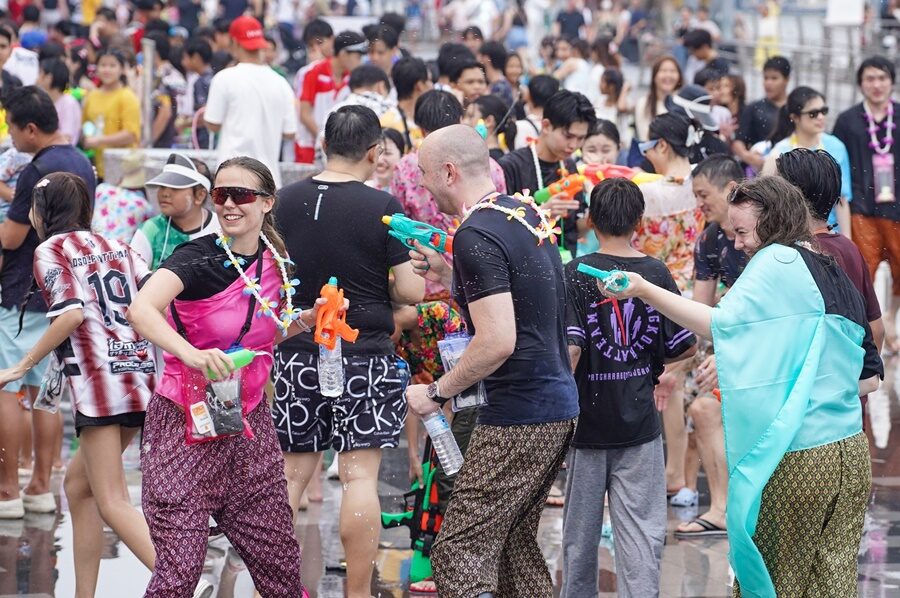 ไอคอนสยามคึกคัก นักท่องเที่ยว ไทย-ต่างชาติ เล่นสงกรานต์แน่นริเวอร์ พาร์ค สาดต่อเนื่องได้ถึง 21 เม.ย.