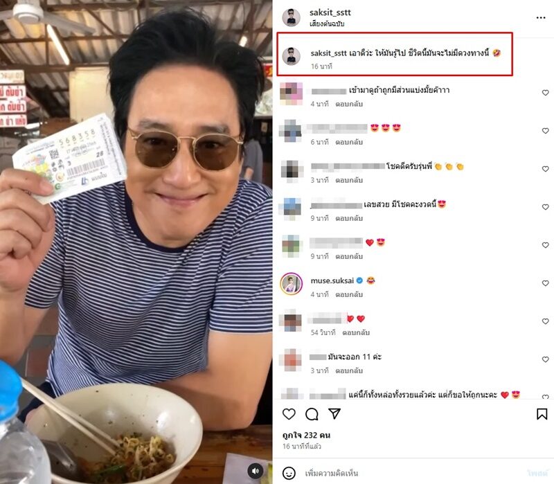 ด้านแฟนๆ คอมเมนต์เชียร์ให้ถูกรางวัล พร้อมทั้งขอรวยไปด้วยกับป๋าแท่ง อาทิ เลขสวย มีโชคคะงวดนี้ , สาธุ ขอให้ถูกค่ะ , 58 ต้องมาค่ะงวดนี้ , รวยๆๆ ไปด้วยค่ะป๋า เป็นต้น