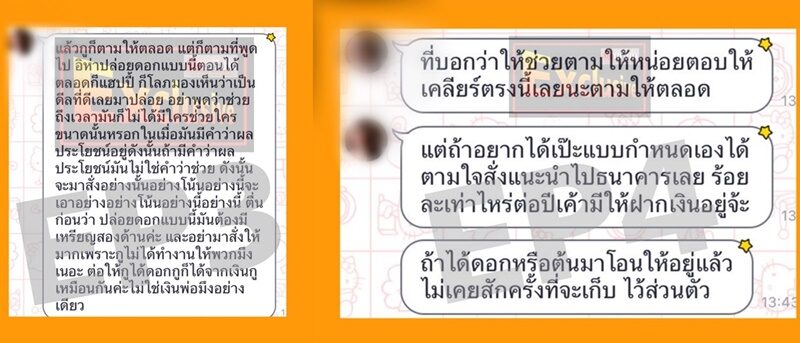 แจ้งว่าเงินดังกล่าวจะนำไปใช้เป็นเงินกู้สำหรับลูกค้าที่เป็นรุ่นพี่คนสนิท โดยแบ่งเป็นยอดเงินในแต่ละครั้งดังนี้: