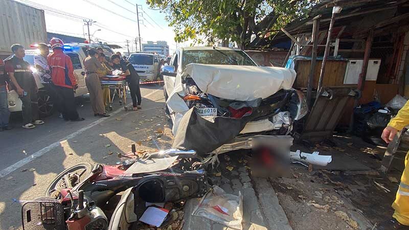 เมื่อเวลา 16.30 น. วันที่ 21 ธ.ค. 2567 ร.ต.ท.จิรสุภางค์ รองสว.(สอบสวน) สภ.บางพลี จ.สมุทรปราการ รับแจ้งเหตุรถกระบะเสียหลักพุ่งชนรถจักรยานยนต์ที่จอดข้างทางเสียหายหลายคัน มีผู้เสียชีวิตติดอยู่ใต้ท้องรถกระบะ ใกล้ซอยบางปลา 63 ขาออก ถนนเทพารักษ์ หมู่ที่ 9 ต.บางปลา อ.บางพลี จ.สมุทรปราการ จึงตรวจสอบพร้อมด้วย แพทย์เวร รพ.รามาธิบดีจักรีนฤบดินทร์ และมูลนิธิร่วมกตัญญู