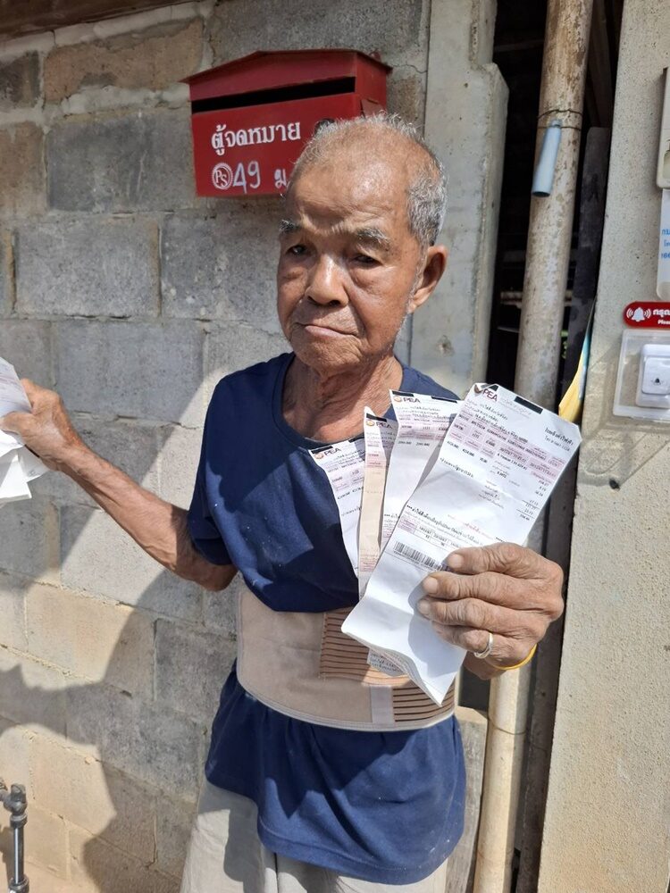ซึ่งตนก็แก่ชรามากแล้ว ก็งงว่าจะต้องไปจ่ายบิลทั้งหมดหรือไม่ เพราะตนก็แก่มาก ไม่ค่อยรู้เรื่องจ่ายบิลจ่ายอะไรมากนัก จึงรอค่ำเพื่อสอบถามลูกหลานว่า จะต้องทำอย่างไรกับบิลค่าไฟฟ้านี้ แต่คุณตาก็บอกเพื่อนบ้านให้มารับบิลที่บ้านตน เพราะไม่รู้ว่าบิลชื่อใครบ้าง เนื่องจากสายตาไม่ค่อยดี