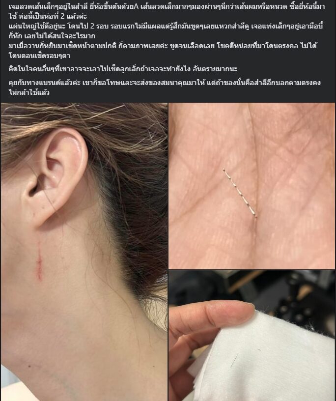 ผู้ใช้เฟซบุ๊กรายหนึ่ง ได้โพสต์ในกลุ่ม "พวกเราคือผู้บริโภค" แชร์เหตุการณ์อุทาหรณ์หลังไปซื้อสำลีแบรนด์ดังมาใช้ แต่ได้ของแถมเป็นลวด