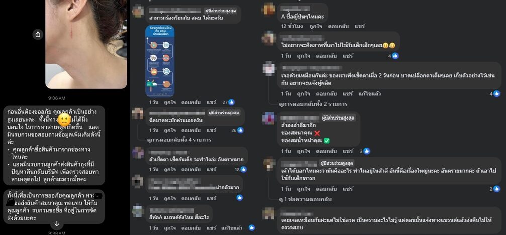 หลายคนแนะนำว่าให้เจ้าของโพสต์แจ้ง สำนักงานคณะกรรมการคุ้มครองผู้บริโภค (สคบ.) เพราะไม่อยากนึกเลยว่าหากเช็ดตาจะเกิดอะไรขึ้น