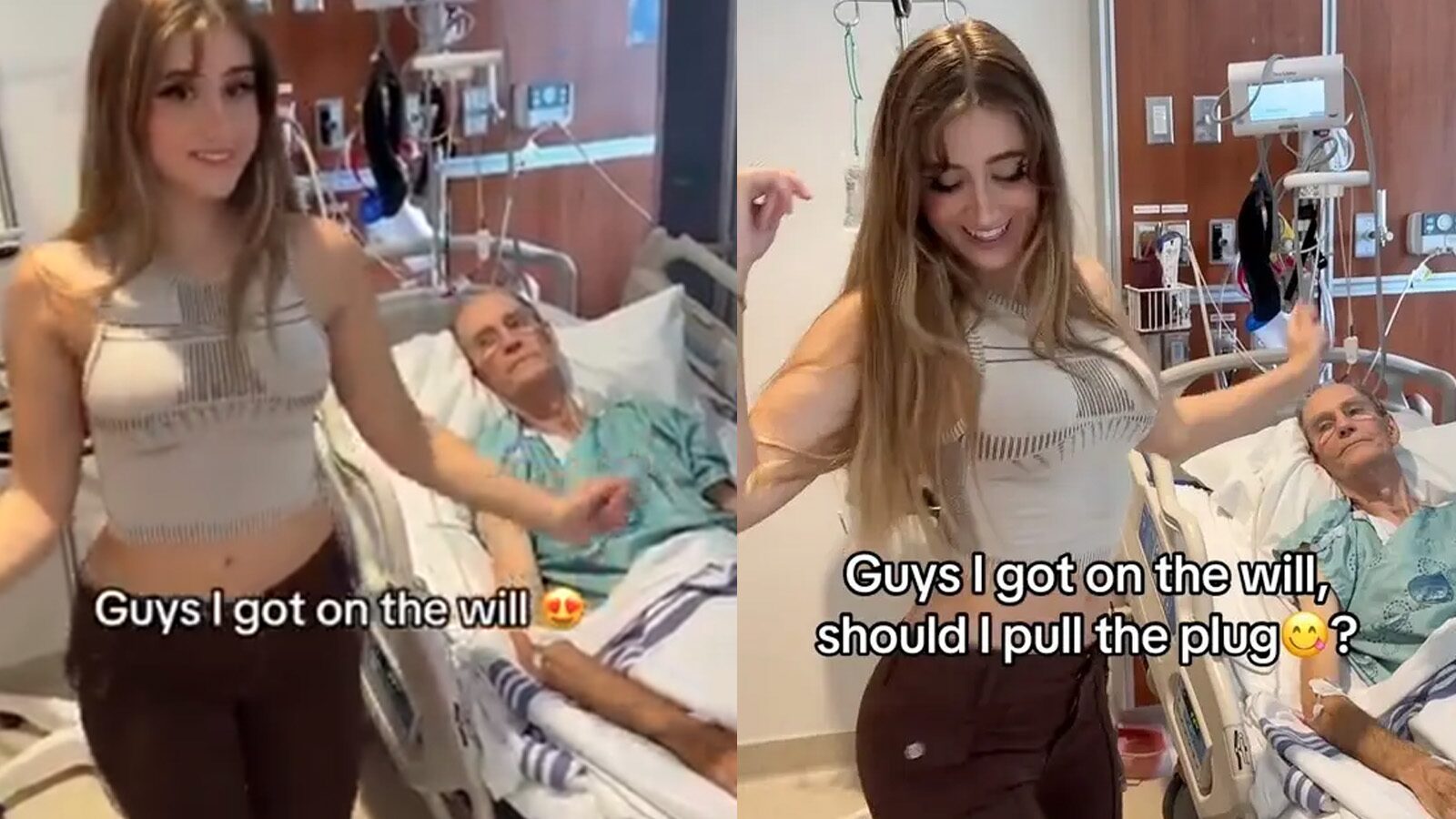 อินฟลูฯสาววัย 22 ปี ไปเฝ้าแฟนรุ่นปู่ที่โรงพยาบาล อัดคลิปเต้นข้างเตียง ถามควรถอดปลั๊กดีมั้ย หลังมีชื่อบนพินัยกรรมแล้ว