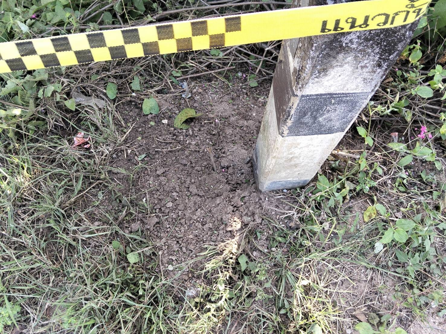 เมื่อเจ้าหน้าที่ตำรวจเดินทางมาถึงที่เกิดเหตุ ได้กั้นพื้นที่พบว่าบริเวณดังกล่าว จากการตรวจสอบเบื้องต้นพบว่าบริเวณหน้าประตูหน้าบ้าน เสาปูนมีร่องรอยดินเป็นหลุม และมีเศษตะปูตกเกลื่อนยังพบสายเอ็นยาวหน้าผูกรั้งหน้าบ้านมีกลุ่มควัน เศษตะปู และลวดมัดไว้ที่ด้านหน้าประตู เจ้าหน้าที่จึงเก็บไว้เป็นหลักฐาน