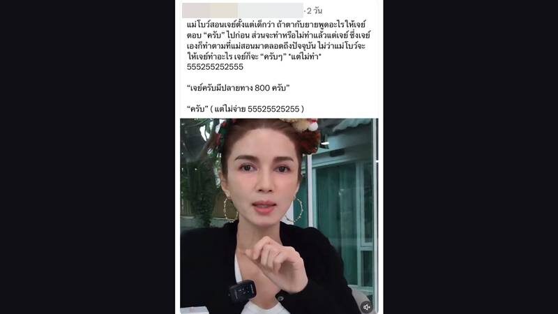 ทว่ากลับกลายเป็นดราม่า เมื่อมีเพจหนึ่งในได้หยิบยกประเด็นเรื่องการสอนลูกให้พูด “ครับ / ค่ะ” ไปก่อน ส่วนจะทำหรือไม่ทำค่อยว่ากันอีกที โดยบอกว่าในระยะสั้นวิธีนี้เหมือนจะช่วยให้เด็กเอาตัวรอดทางสังคมได้ดี แต่ปัญหาคือเด็กกำลังเรียนรู้บทเรียนที่แฝงอันตรายมาก