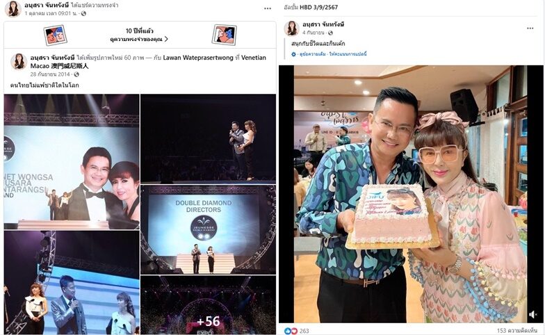 เมื่อต้นเดือนตุลาคมที่ผ่านมา เจ้าตัวได้แชร์โพสต์ความทรงจำเมื่อ 10 ปีกับสามี ขณะไปขึ้นเวทีร่วมงานด้วยกัน และมักมีทริปหวานไปต่างประเทศด้วยกันตลอด