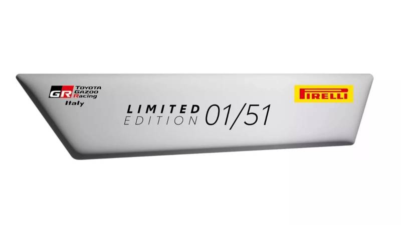 อีกหนึ่งความโดดเด่นคือตราสัญลักษณ์ TGR Italy รุ่นพิเศษจำนวนจำกัด และภายในห้องโดยสารมีตราสัญลักษณ์ที่คล้ายกันพร้อมหมายเลขการผลิตของแต่ละคัน รถแฮทช์แบ็กคันนี้มาพร้อมล้ออัลลอยขนาด 18 นิ้วที่ตกแต่งด้วยสี Heritage Gold และยาง Pirelli P Zero Trofeo R แบบกึ่งสลิก