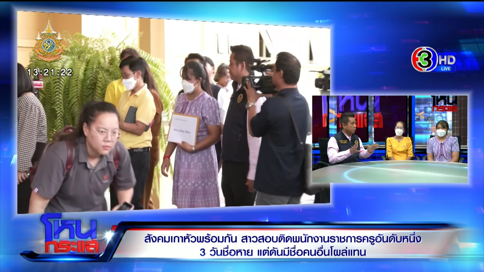 เบญ : หนูรู้สึกว่าความหวังของพ่อแม่ ความหวังของยายได้พังไปหมด ความหวังของหนู (ร้องไห้) หนูตั้งใจมากๆ แล้วหนูก็ดีใจมากที่ตอนแรกหนูสอบได้ (ร้องไห้) พอเจอชื่อหายไปหนูก็เสียใจมาก เพราะหนูวางแผนทุกอย่าง จริงๆ วันจันทร์-อังคารนี้หนูต้องไปซ้อมรับปริญญา แต่รายชื่อประกาศว่าหนูได้ที่หนึ่ง เขาให้รายงานตัววันที่ 17 หนูก็เลยยกเลิกทางการรับปริญญาเพื่อเอางาน เพราะงานก็มั่นคงต่อเรา หนูโทรไปติดต่อไม่ขอรับแล้ว เพราะไปรายงานตัววันที่ 17 นี้